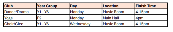 Clubs start Monday 12th January and will run until Wednesday 11th February.